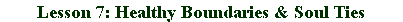 Lesson Seven Healthy Boundaries: Why Do I Need Them? One of my biggest lessons in life was being able to say, “No!” rather than always trying to please people. Many people have a hard time saying “No!” You might have to practice it a few times. What set me free was when I learned that when I say, “Yes,” with my mouth, and “No,” with my heart, God only sees my heart. That set me free: I thought why say “Yes,” because I am afraid to hurt people’s feelings and feared rejection. Then I leaned that I have a hula hoop: I am the only one in my hula hoop with God. I learned very quickly that I didn’t have to let others in my hula hoop to make decisions for me that were mine to make. Once we enter adulthood, our parents only have influence over us. They may express their opinion, but the bottom line is that you are responsible for you. To understand that, I must understand that I am the only one that can change in my situation. I can’t change others. What powerful stuff this was to learn. I hope that you can learn this lesson too and be set free in your thinking as well. Below is a simple version of what boundaries are all about. Healthy boundaries give you rest and peace. ( Matthew 28) We all have boundaries, which we will call your “hula hoop,” the invisible property line around you. You are responsible for “YOU.” Example: “You make me mad!!!” This statement gives another the power and authority over you. Without freedom, there is no obedience. If you are not free to say “No!” then “YES” is not a gift. If you say “YES,” but your heart says “ NO!” God only sees your heart. He sees “NO.” You are the only one in your hula hoop with God. What is inside your circle?